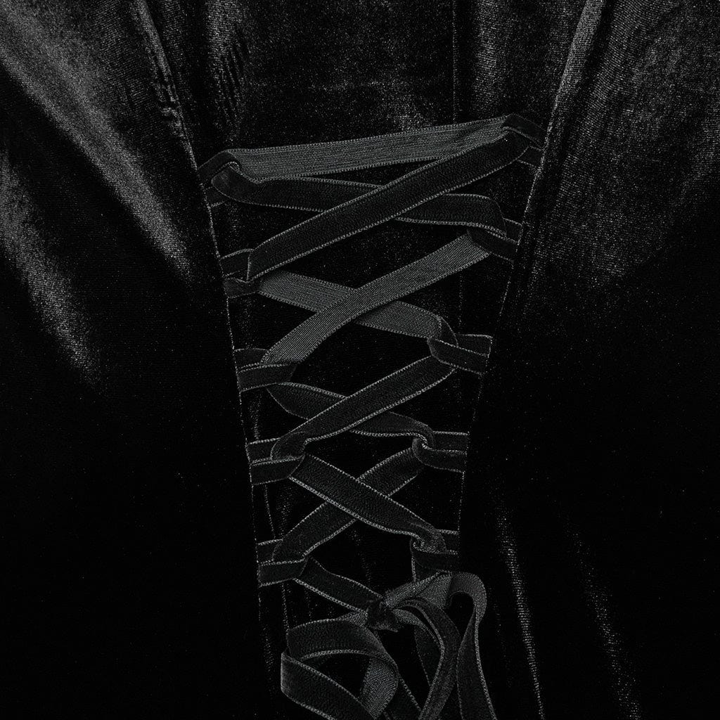 Women's Gothic Doll Collar Lace-up Velvet Prom Dress Black