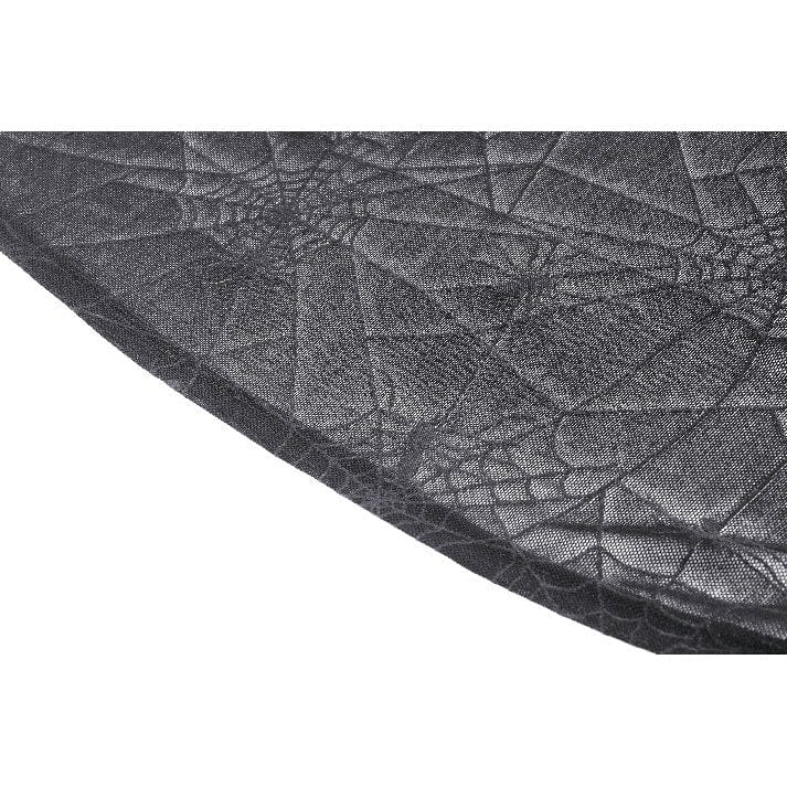 This elegant Gothic dress features a unique bat-wing collar design, complemented by a deep U-neckline that creates an alluring and mysterious look. The collar is adorned with delicate spider web lace, adding a touch of eerie charm. The triple-layered front skirt with side slits is intricately laced together with ribbons, showcasing a rich texture and structure. The bottom layer is crafted from stretchable spider web fabric, offering a subtle, mesmerizing pattern, making this dress a perfect blend of Gothic elements and refined design for a captivating appearance.