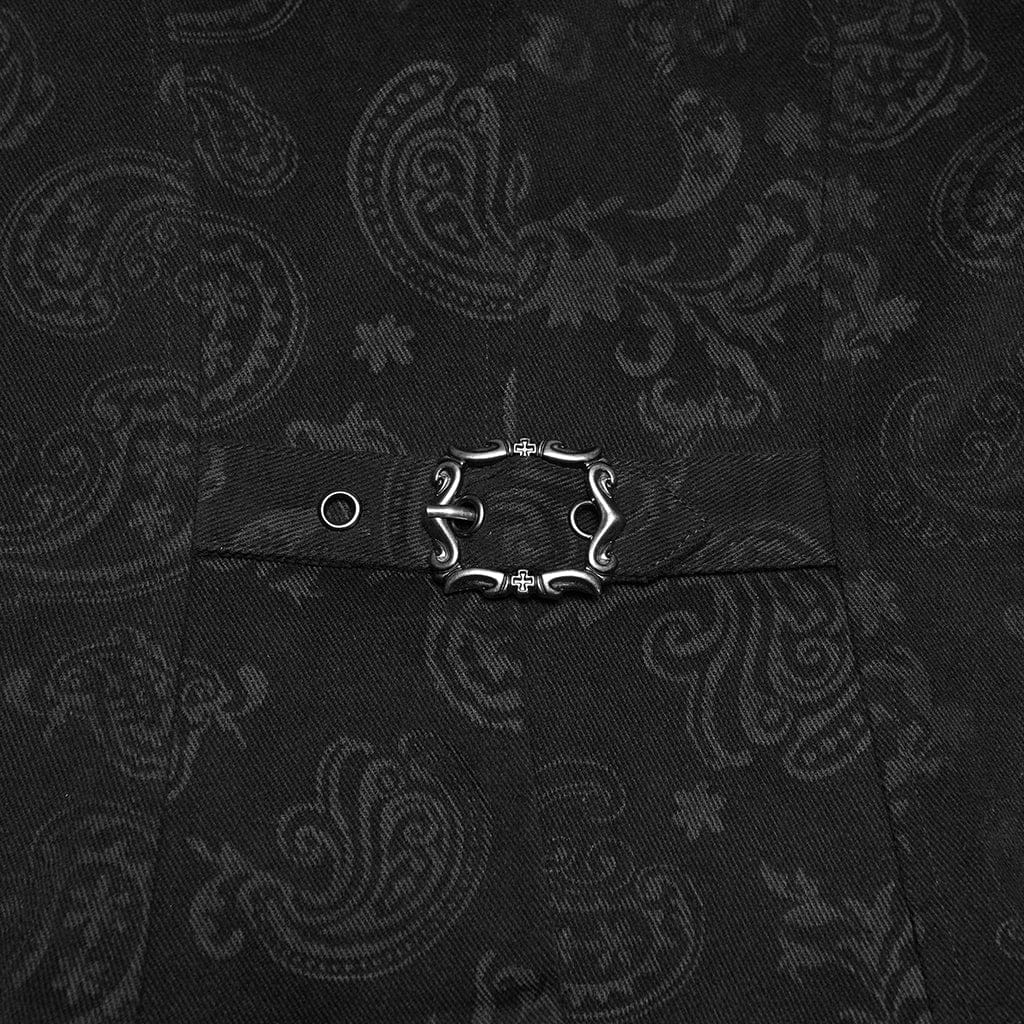 It features ruffled trims (nodding to victorian gothic elegance), side drawstrings (for customizable waist shape), and a back buckle closure that amplifies its sleek, mysterious vibe. The intricate pattern and chain accents add subtle gothic vampire-like allure.