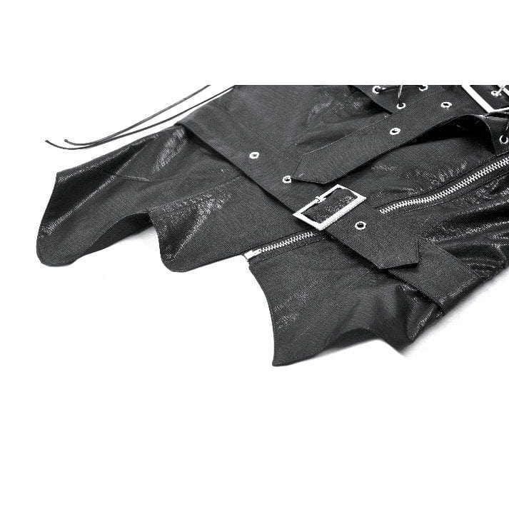 Women's Punk Straps Diagonal Zipper Faux Leather Vest