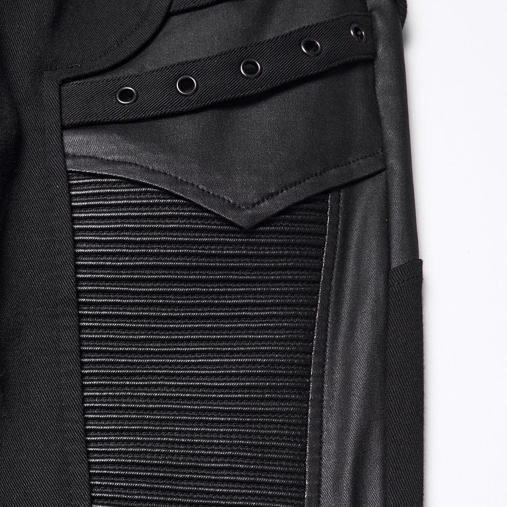 Women's Punk Eyelet Strap Faux Leather Splice Pants
