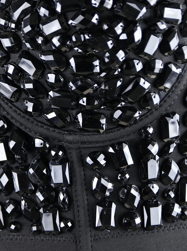 Women's Punk Rhinestone Push Up Bra Clubwear Party Bustier Crop Top