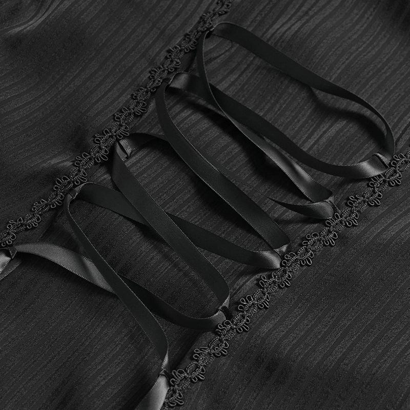 Women's Gothic Pinstripe Drawstring Flared Sleeved Shirt Black