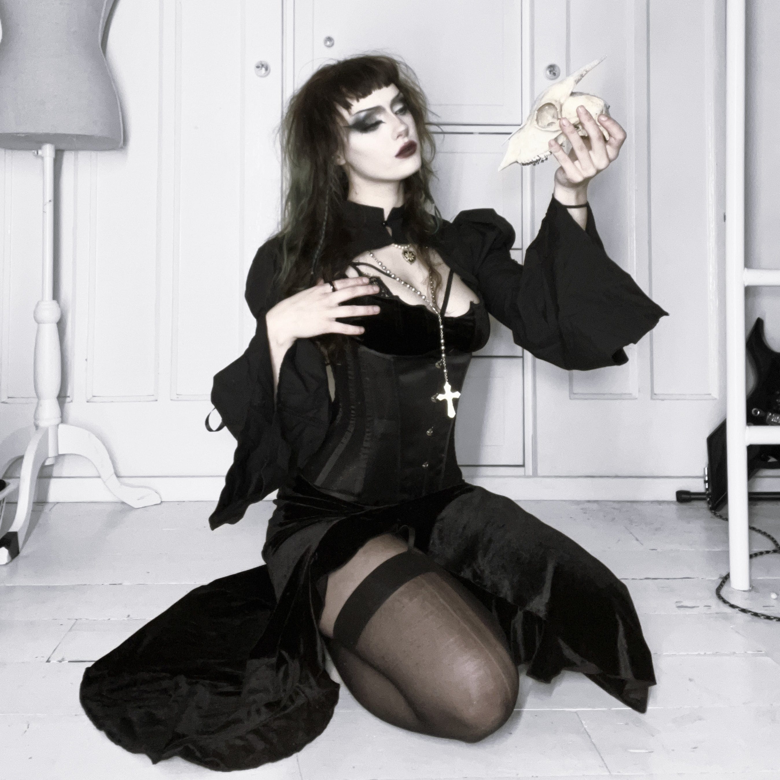 Women's Gothic Lace-up Flare Sleeved Cape
