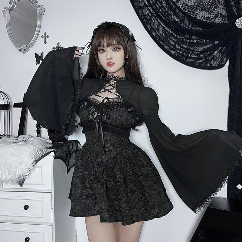 Women's Gothic Strappy Flared Sleeved Cape