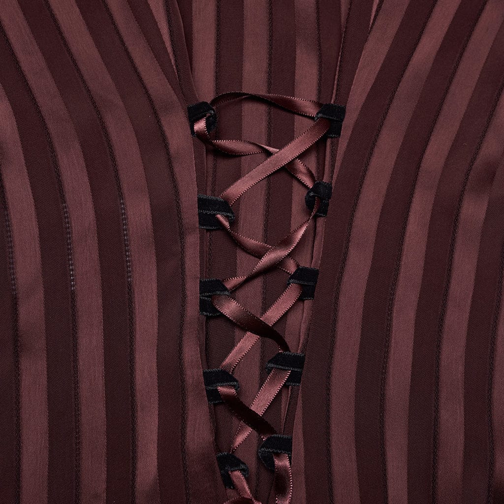 Pair it with a high-waisted gothic layered ruched skirt and combat boots for a casual daytime look, or style it with a gothic underbust corset and choker for a moody party outfit. It also shines at gothic-themed events, where its striped pattern and lace-up design elevate the darkly graceful vibe.