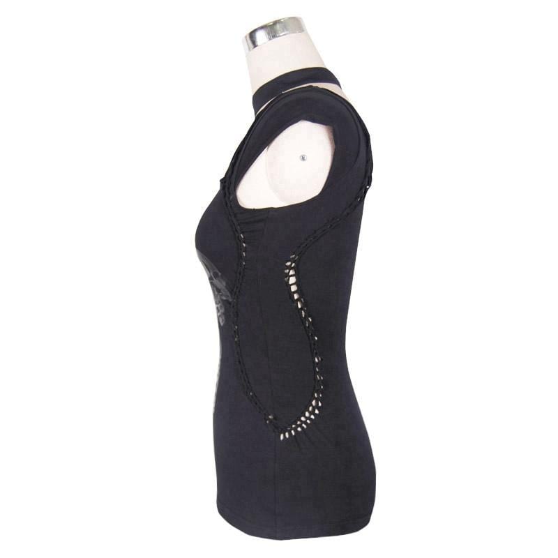 Women's Goth Asymmetric T-Shirt With Skeleton Design