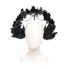 Black flowers, feathers, and cross combine to create a mysterious Gothic atmosphere, perfect for theme parties and dark - themed looks.