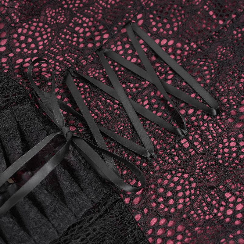 Women's Gothic Cutout Beaded Flared Sleeved Shirt Black-Red