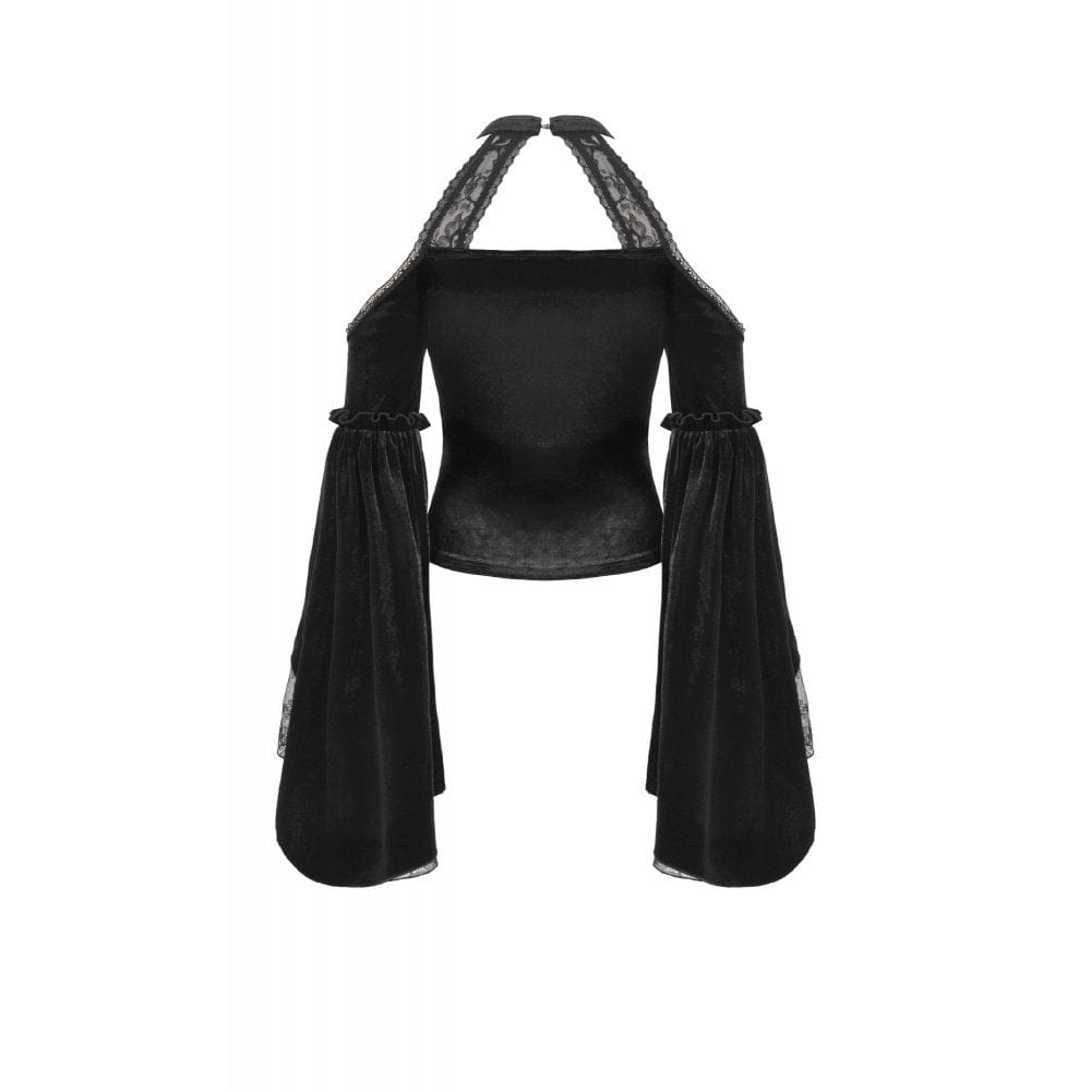 Women's Gothic Cutout Halterneck Velvet Flared Sleeved Shirt