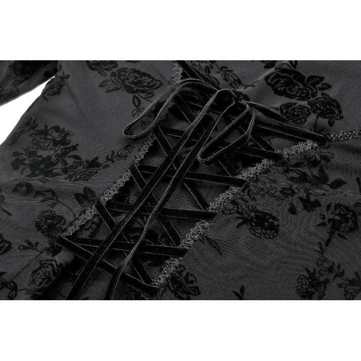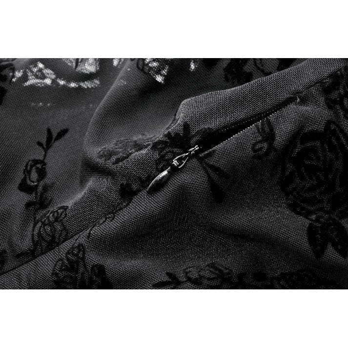 Women's Gothic Embroidered Floral Mesh Square-cut Collar Dress