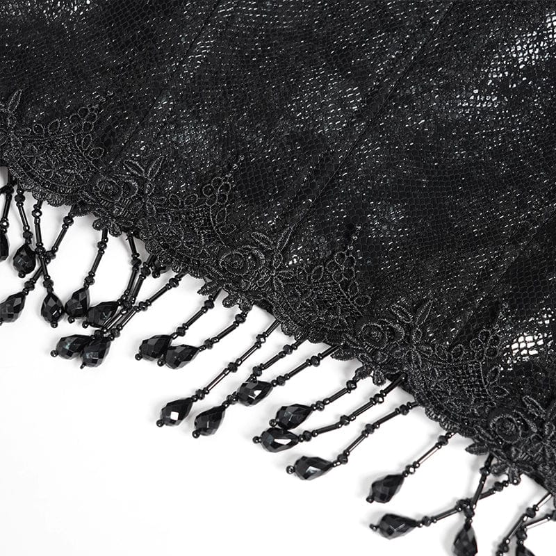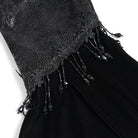 The juxtaposition of lace and velvet yields a textural dialogue. The lace’s delicate openwork mirrors the intricate carvings of an ancient citadel, while the velvet’s plush drape evokes the veil of a moonless night. This interplay conjures the layered mystery intrinsic to Gothic aesthetics, reminiscent of forbidden beauty secreted within a regal court.