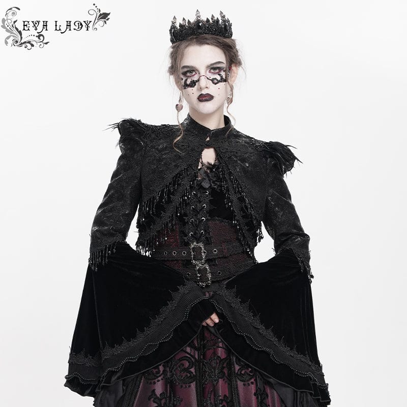 Women's Gothic Floral Embroidered Beaded Frog Short Jacket