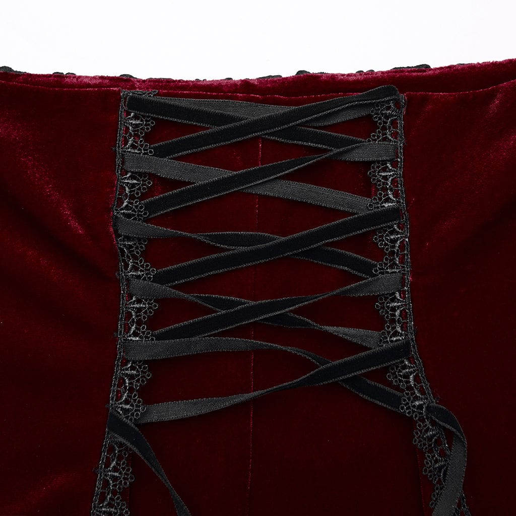Women's Gothic Floral Embroidered Irregular Fishtail Skirt Red
