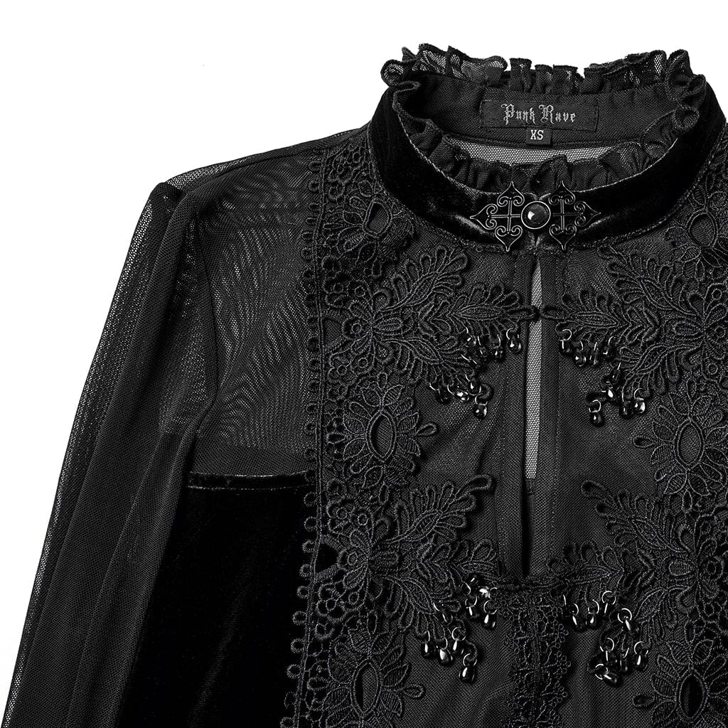 Women's Gothic Floral Embroidered Mesh Splice Maxi Dress Black