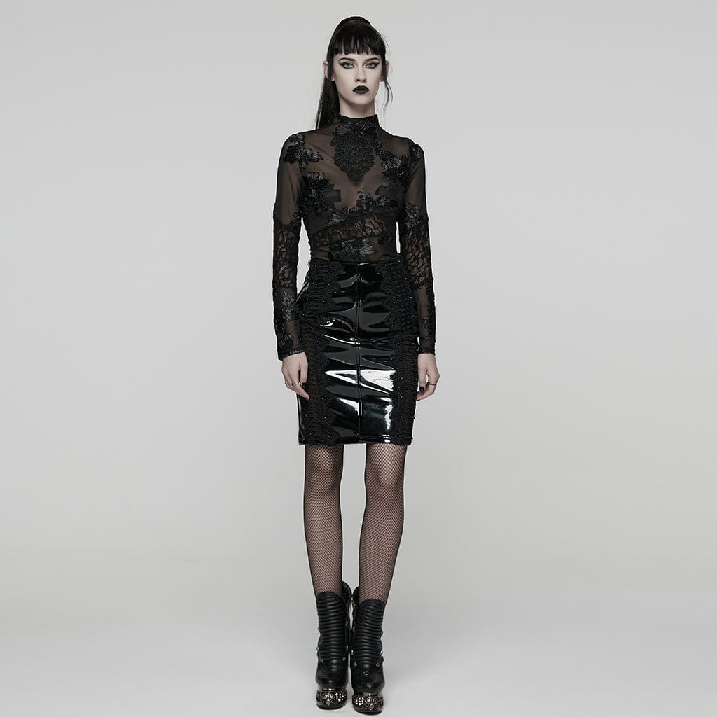 Made of see-through mesh fabric, the hazy texture is like the forbidden beauty in Gothic legends blooming quietly. Between visibility and invisibility, it not only exudes Gothic sexy charm but also is shrouded in a layer of mystery, as if telling those unknown Gothic pasts about beauty and taboo.