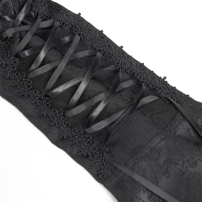 Women's Gothic Floral Jacquard Lace-up Puff Sleeved Shirt Black