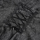 Delicate lace panels gracing the neckline and shoulders inject a veil of mysterious softness. They artfully counterbalance the fabric’s weight, weaving rich visual depth and stitching romantic subtlety into the bold gothic aesthetic.