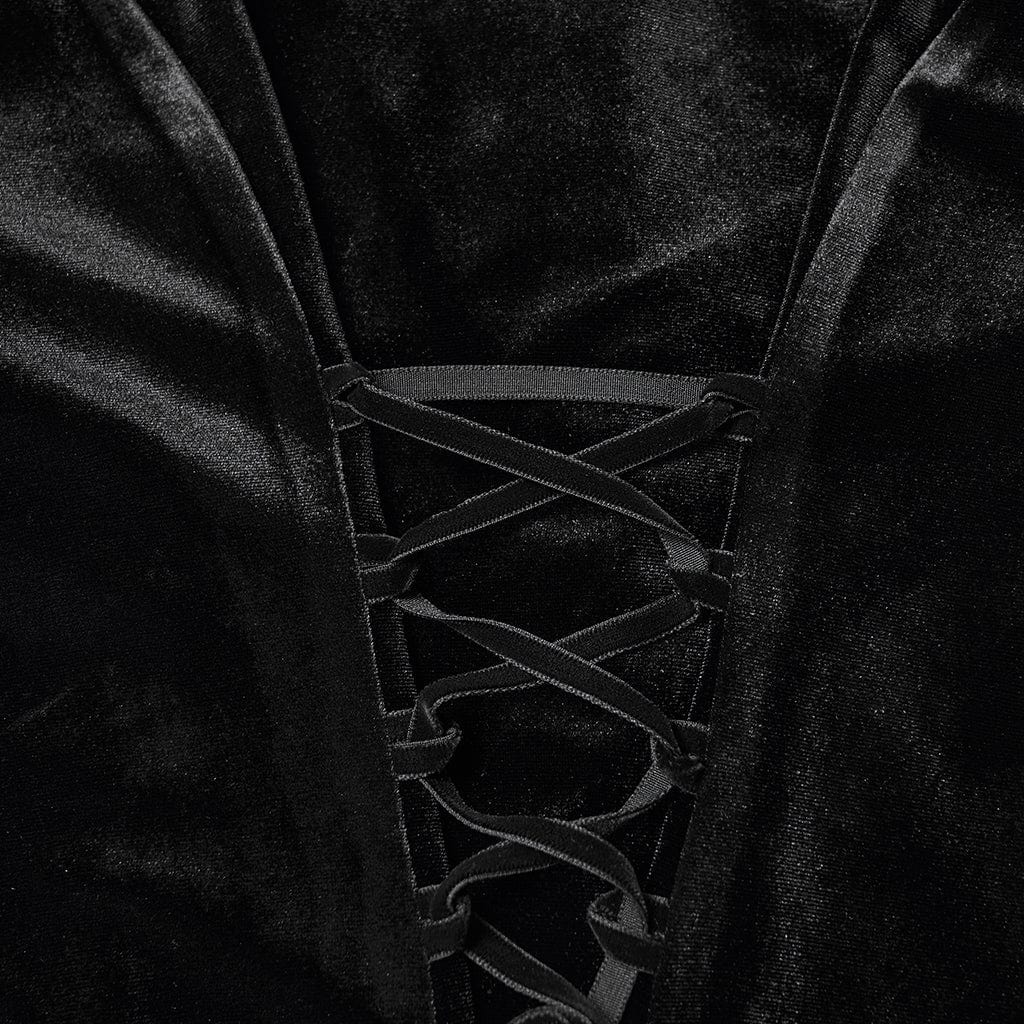 Women's Gothic Lace-up Puff Sleeved Top Black