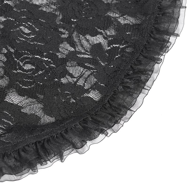 The neckline boasts a hollow - out design paired with a lace collar. As it reveals the neckline, the fine, delicate texture of the lace serves to amplify the dark, romantic aesthetic.
