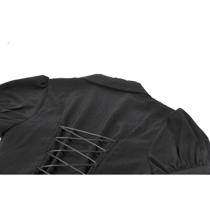 Women's Gothic Plunging Pleated Puff Short Sleeved Blouse