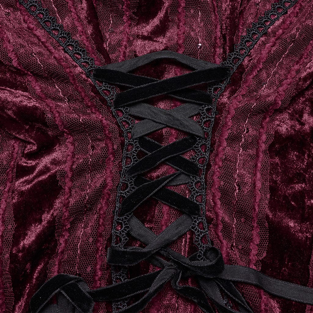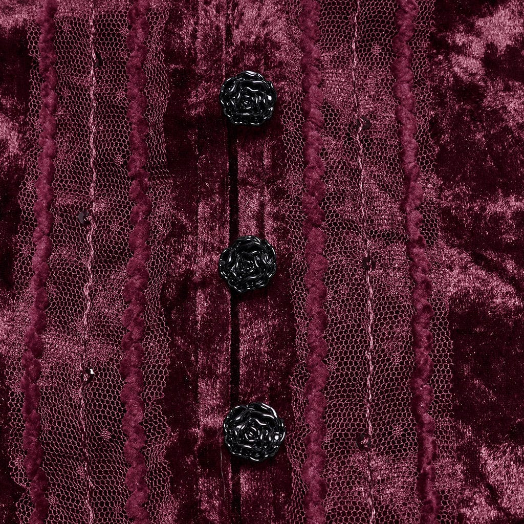 Women's Gothic Plunging Puff Sleeved Velvet Shirt Red