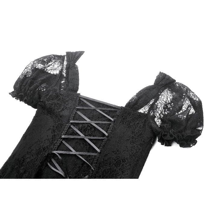 Women's Gothic Puff Sleeved Two-piece Lace Maxi Dress