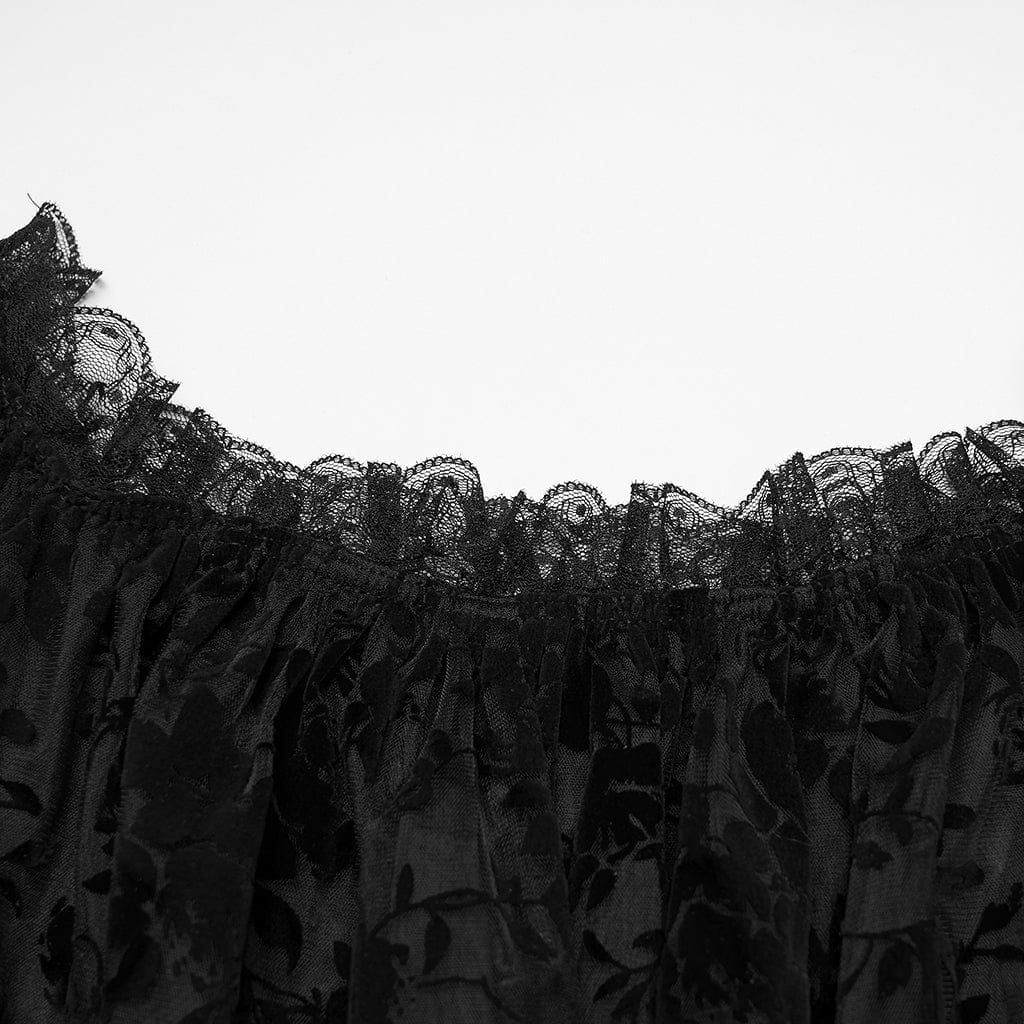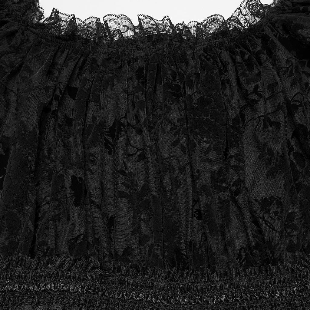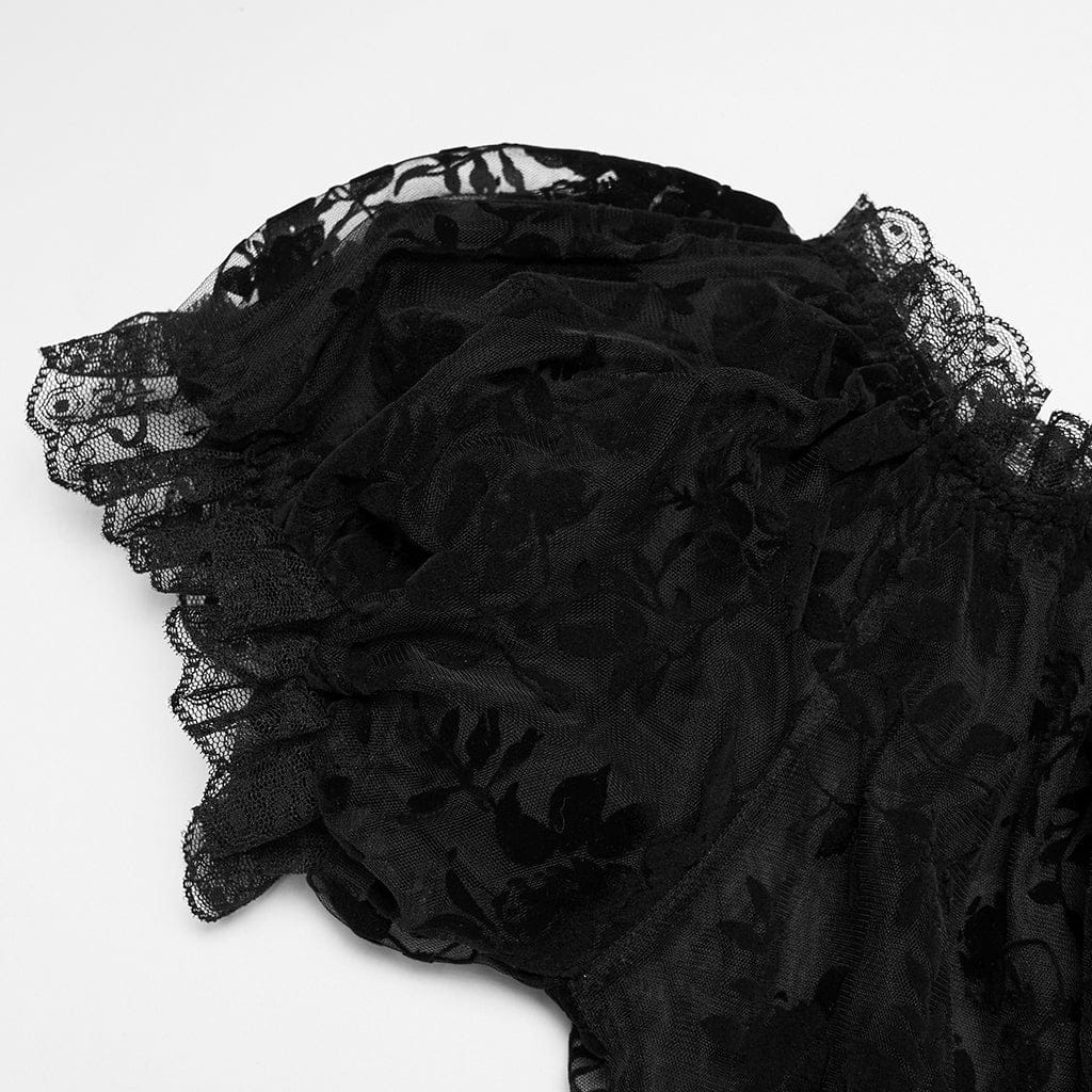 Women's Plus Size Gothic Off Shoulder Ruffles Sheer Shirt Black