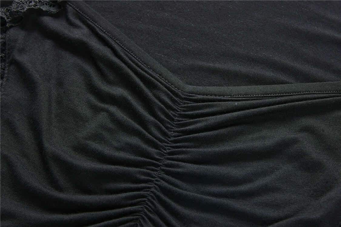 The princess cut of this short top ensures a wonderful fit around the body. Little ruched details on the bust and tiny frill on the seam lines define the style of this top. Lace insets and flounce on the wrist add the necessary feminine touch to this Goth garment.
