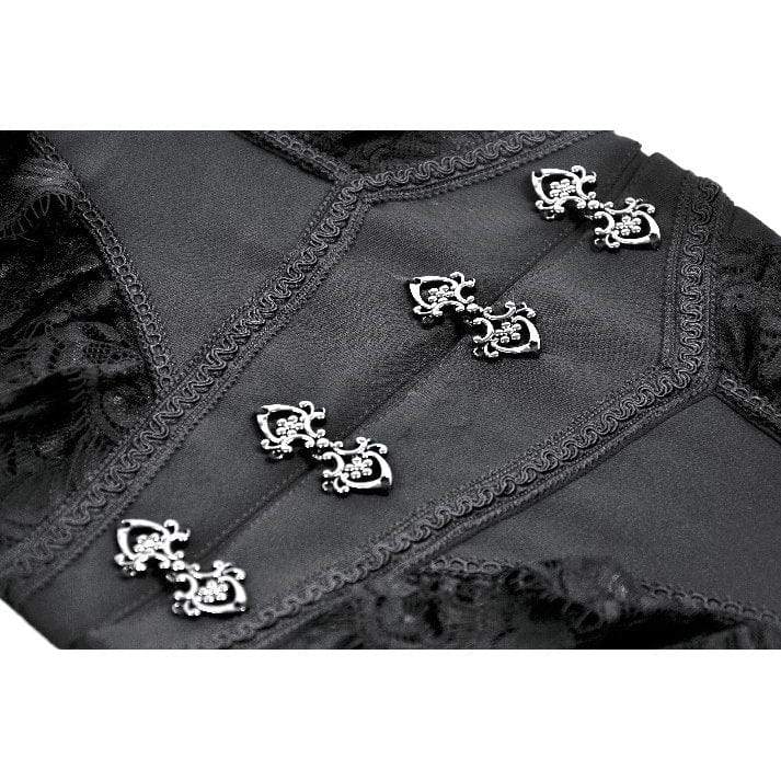 Many women who are into gothic outfits and lifestyles love to wear corsets(overbust corsets or underbust corsets). The common color for this garment is black, although sometimes the corsets can come in other colors such as red. The corsets are made of a wide range of materials. Often, gothic corsets will have multiple materials on them. For example, one garment may include synthetic leather and lace. A corset is a versatile garment because it pairs well with many other types of gothic clothing, including pants, skirts, and leggings.