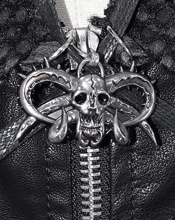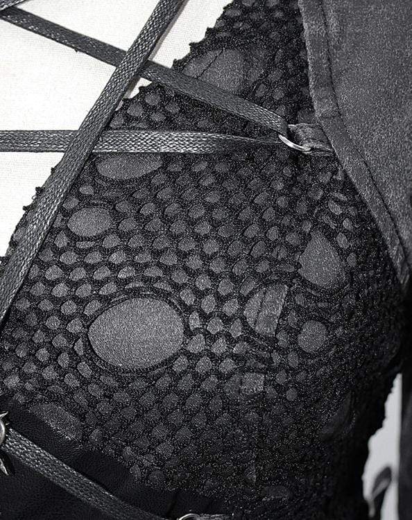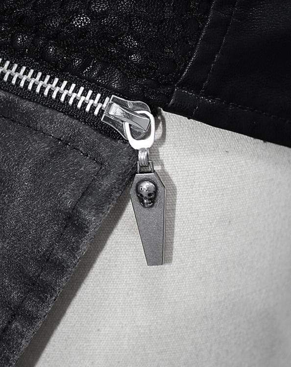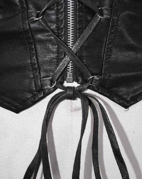 Women's Punk Stand Collar Rivets Lacing Faux Fur Jacket