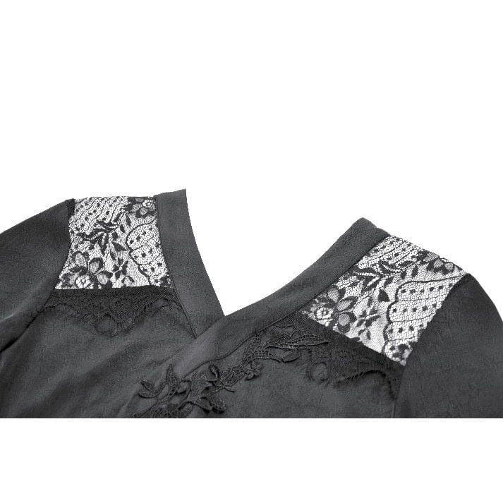 Women's Gothic Floral lace Sheer High Low Long Sleeved Dress
