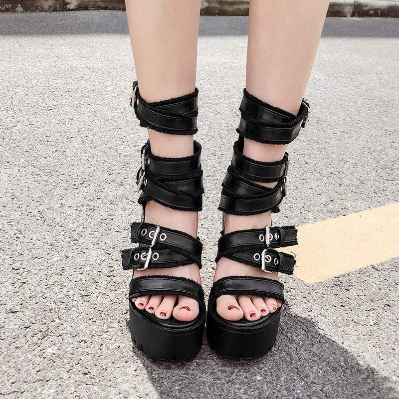 Women's Gothic Punk Buckles Mid-calf Gladiator Boots