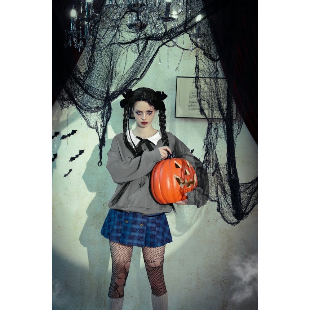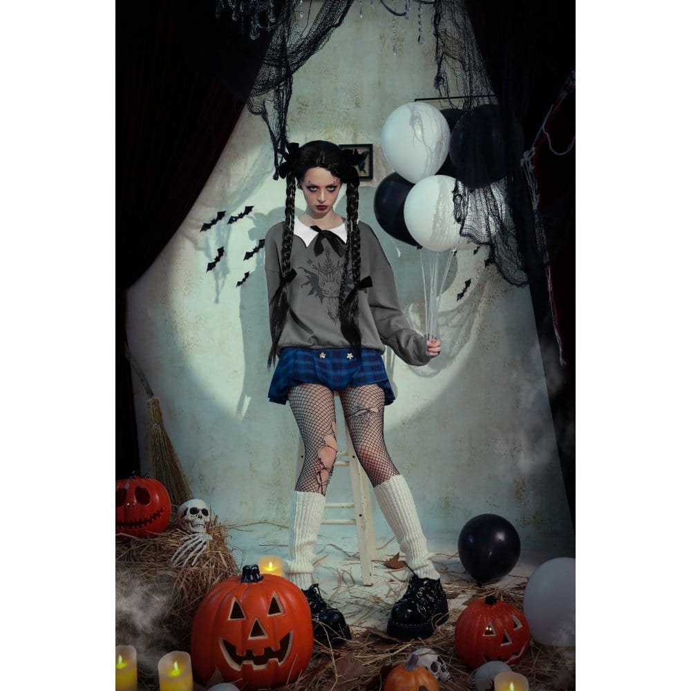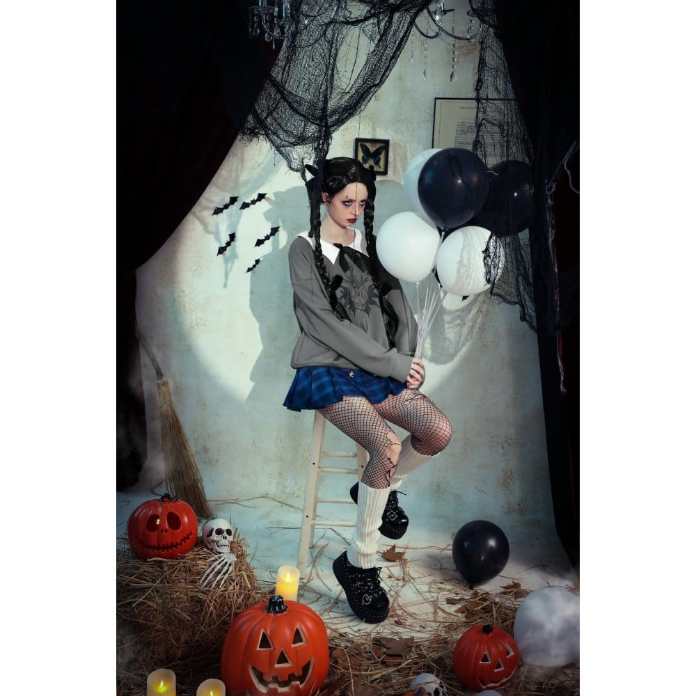 Women's Grunge Bowknot Bat Sweatshirt Gray