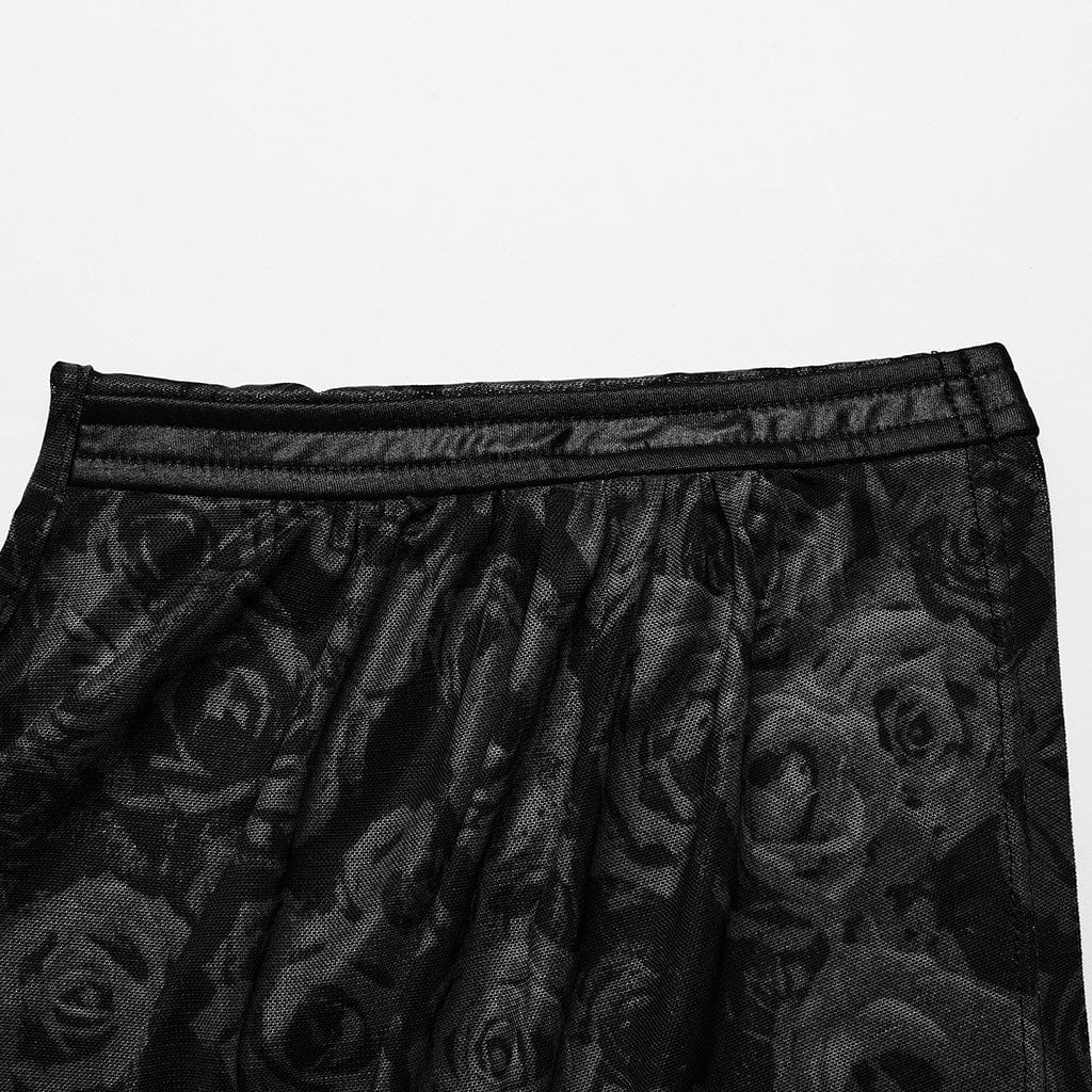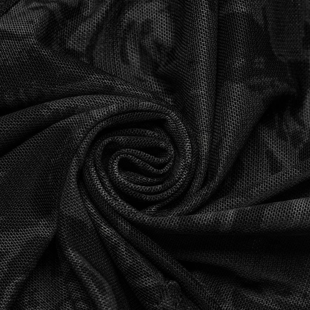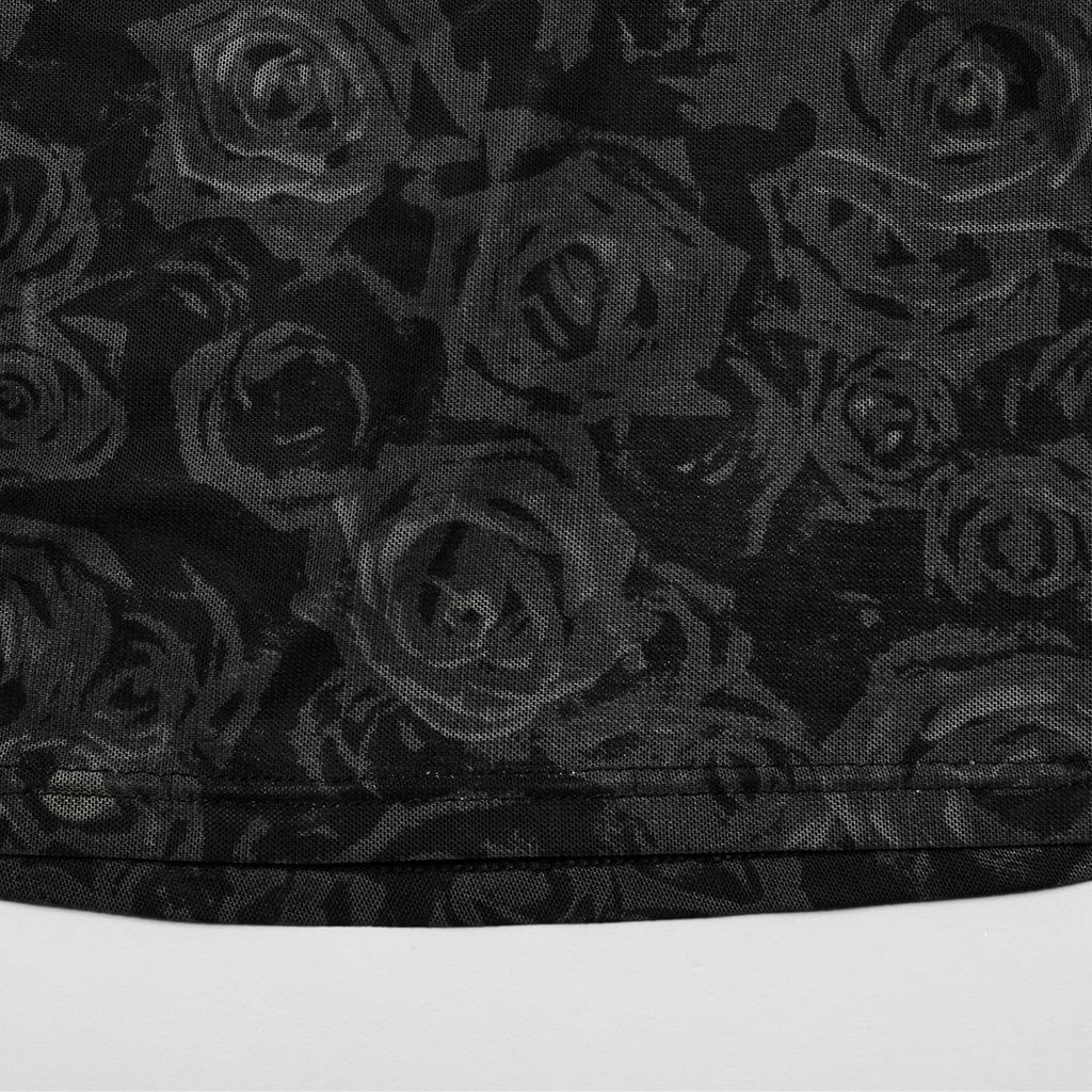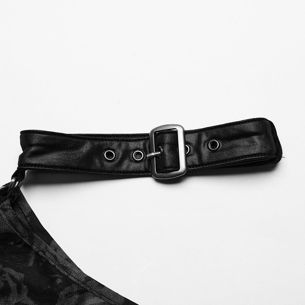 This punk tank top is made of printed mesh fabric. Slash shoulder design. The choker connecting the shoulder is adjusted and detachable. Slim-fit silhouette and good elastic fabric. Available in two colors.
