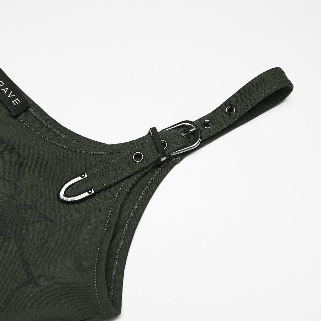Women's Punk Spiders&Web Printed Tattered Tank Top Black-Green