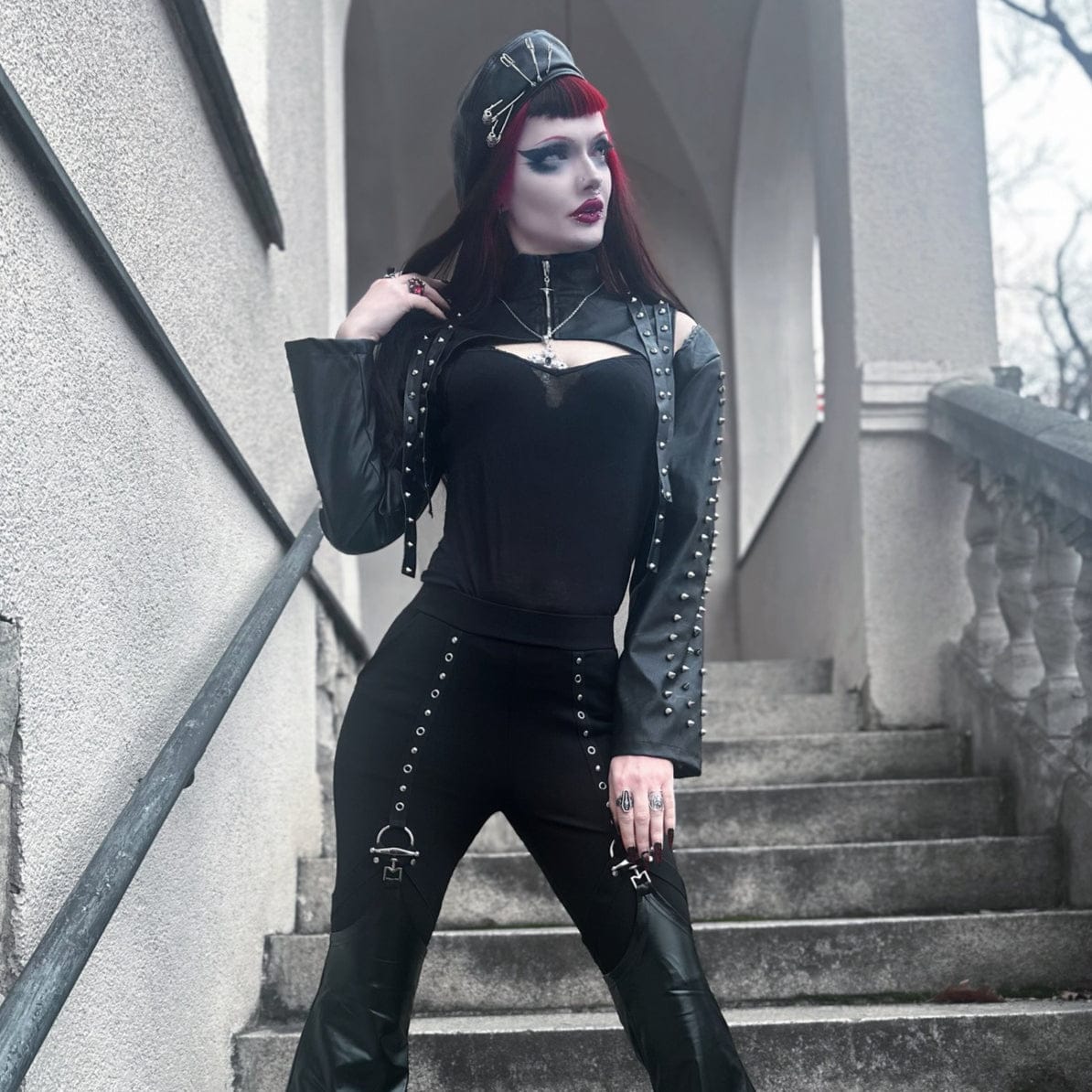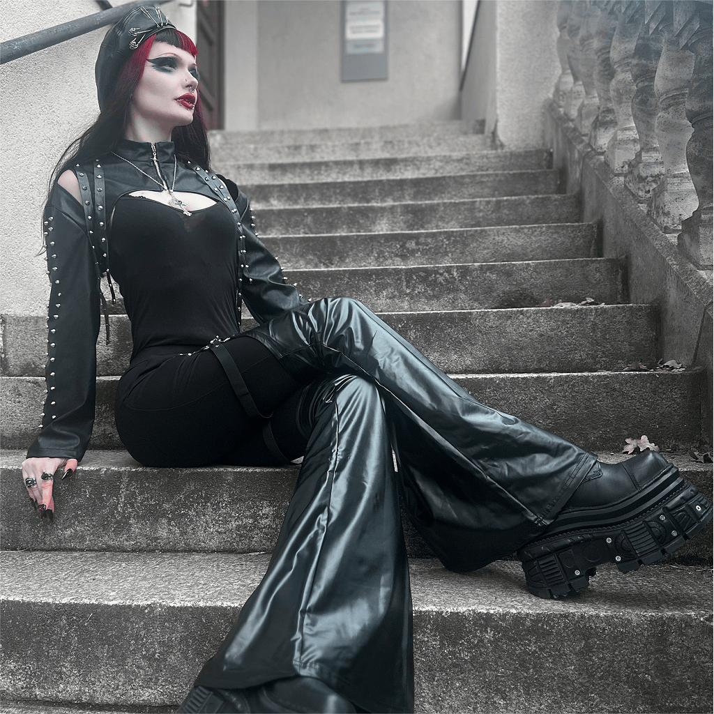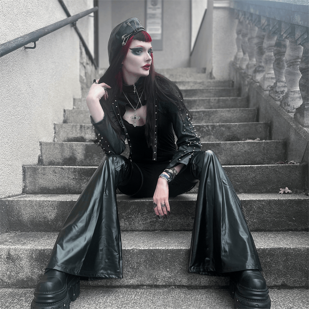 Women's Punk Strap Stud Zip Faux Leather Cape