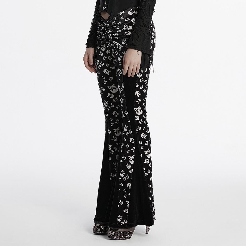 Women's Gothic Drawstring Skull Flocking Mesh Flared Pants