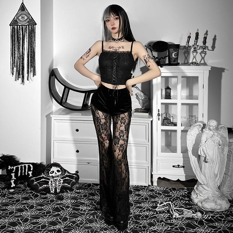 Women's Gothic Rose Mesh Splice Velvet Pants