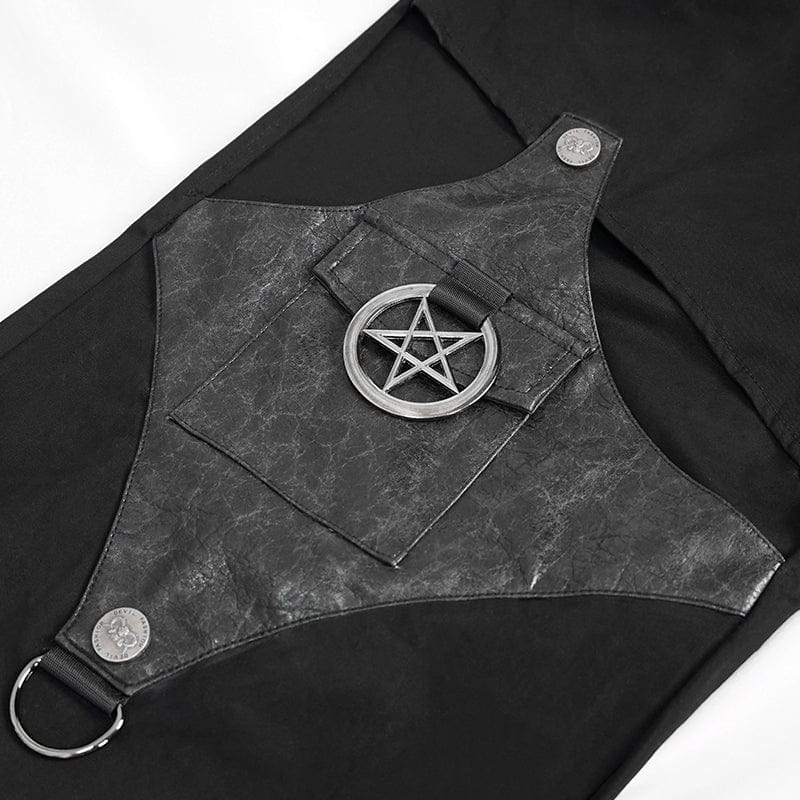 Women's Punk Cutout Faux Leather Splice Jogger Pants with Chain