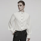 Men's Gothic Puff Sleeved Lace Splice Chiffon Shirt White