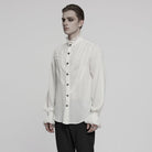 The subtle yet bold design of this shirt is perfect for gothic enthusiasts who want to make a lasting impression. Whether you’re dressing it up for a formal occasion or pairing it with dark trousers for a more casual alternative look, this shirt offers a versatile and timeless style. Available in two colors, it’s ideal for those who want to add a touch of gothic elegance to their wardrobe.