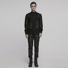 Men's Gothic Stand Collar Embroidered Sheer Chiffon Shirt Black