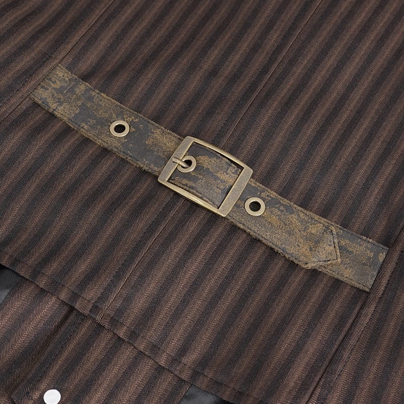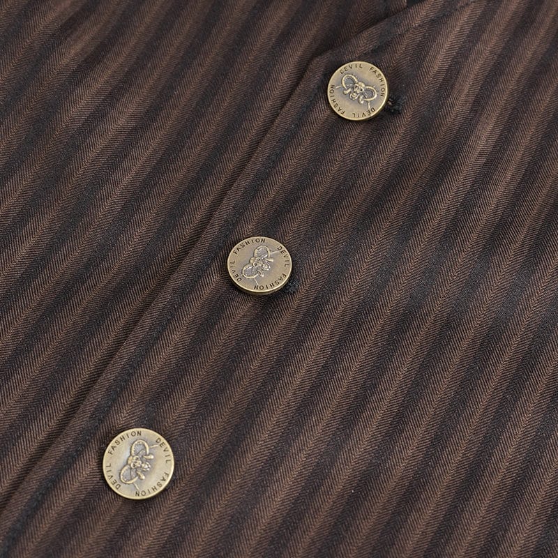 Men's Gothic Striped Faux Leather Splice Coffee Vest