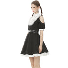 Women's Dark Cutout Shoulder Shirt Collar Black Dress Maid Dresses with Belt