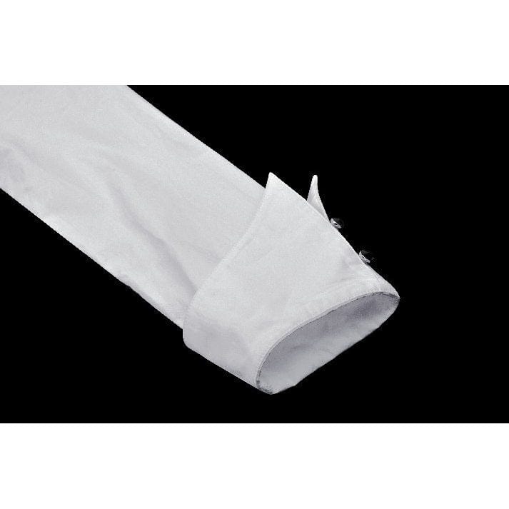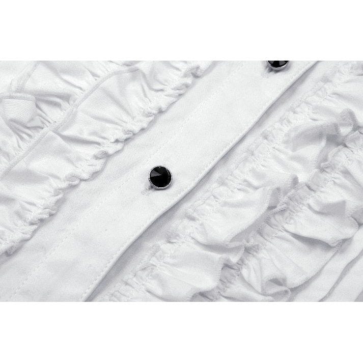 The ruffled accents along the chest elevate the shirt’s aesthetic, introducing a layer of romantic detail that contrasts beautifully with the bold collar and sharp cuffs. These ruffles seamlessly blend vintage charm with a Gothic sensibility, bringing a touch of luxurious refinement to an otherwise daring style.