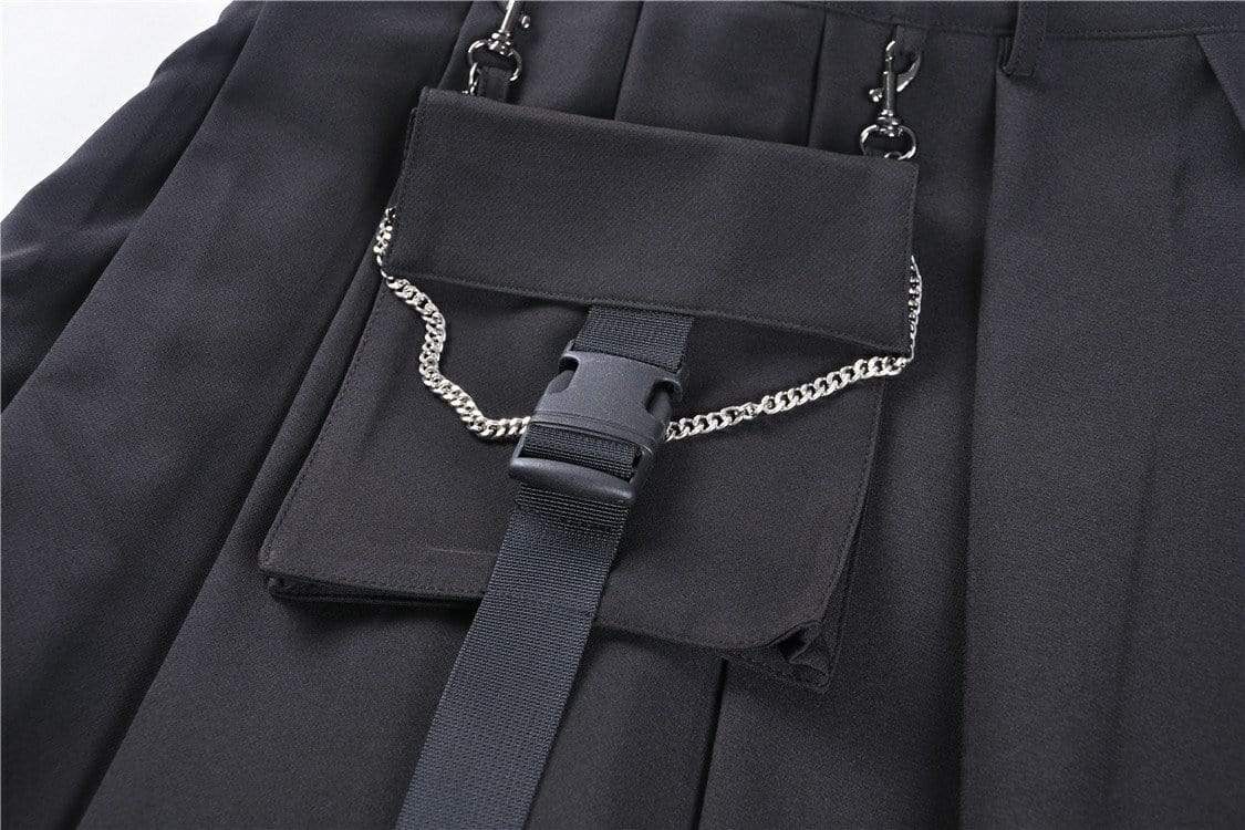 Women's Gothic Black Pleated Mini Skirt With Waist Pocket