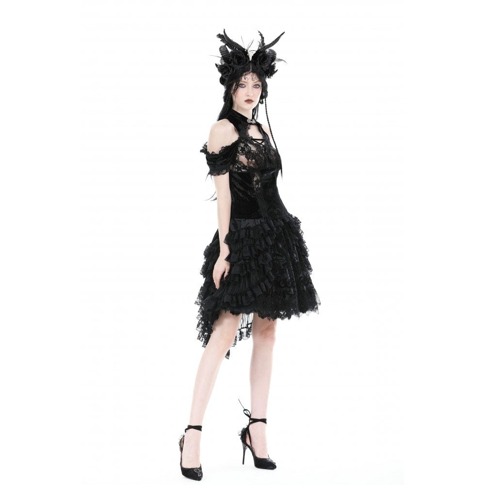 Women's Gothic Off Shoulder Lace Splice Velvet Top