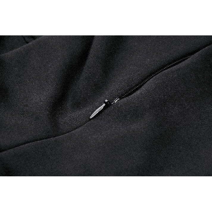 For ease of wear, the dress includes a discreet zipper on the side, allowing you to slip into it effortlessly. This zipper ensures a secure fit while maintaining the dress's sleek silhouette.