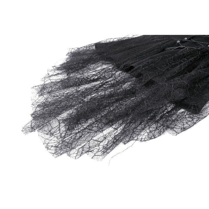 Spider mesh patchwork on the waist adds an element of darkness and intrigue, creating a visually captivating contrast against the solid fabric. This spider mesh detail adds texture and depth to the dress, enhancing its gothic aesthetic.